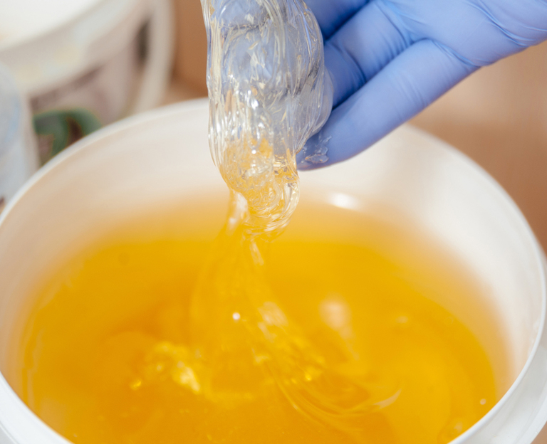 The sugaring paste consists of sugar, water and lemon. The molecules are very small so they can penetrate the hair follicles and get a better grip of the hair deep down.